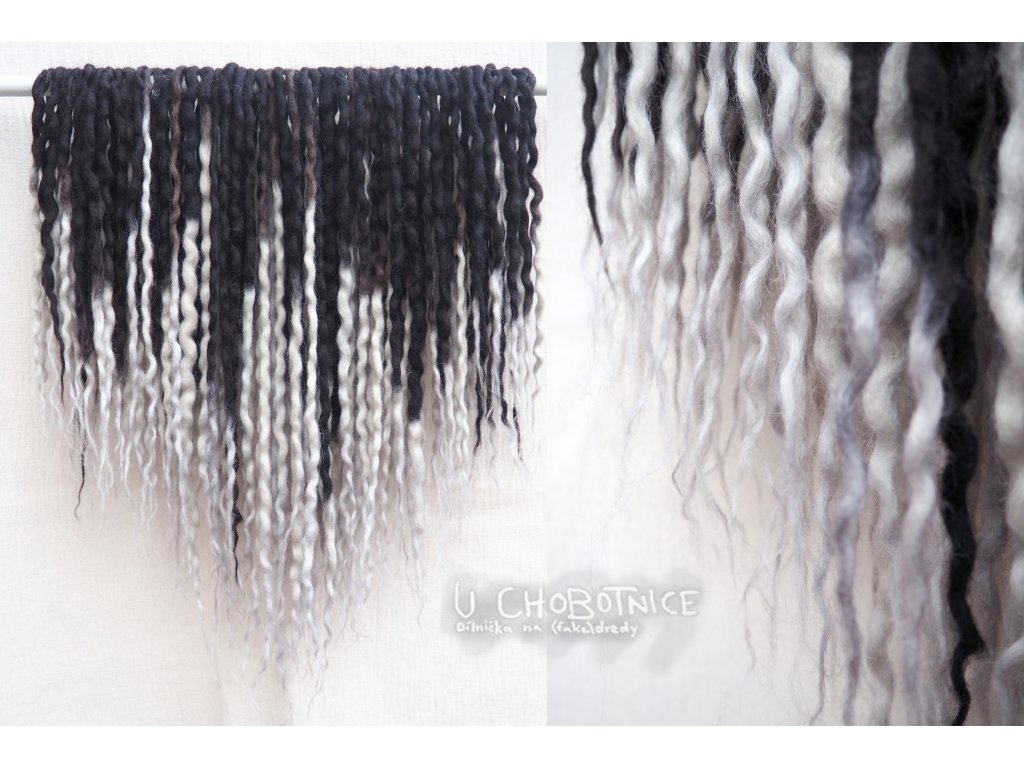 Vlněné fakedready s barevným přechodem z černé do bílé.